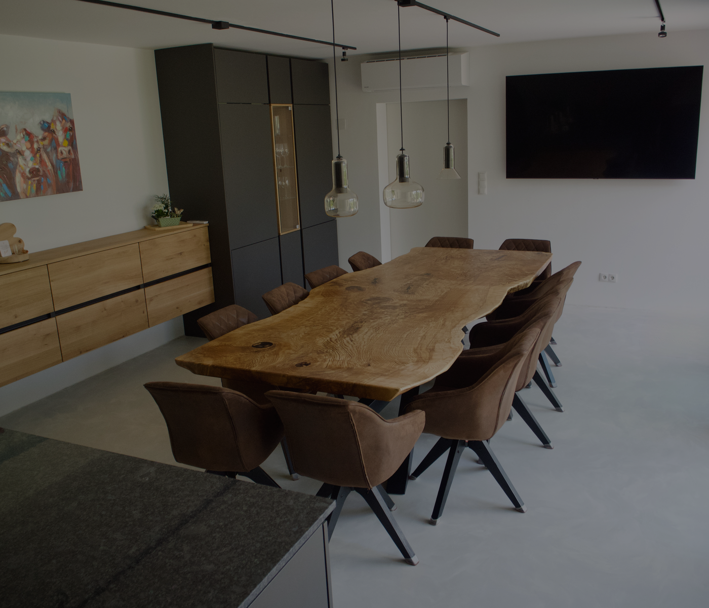 Jede Tischplatte wird präzise bearbeitet, geschliffen und veredelt, sodass die einzigartige Maserung optimal zur Geltung kommt. Durch unsere handwerkliche Expertise entstehen langlebige, hochwertige Möbelstücke, die Eleganz und Natürlichkeit vereinen.