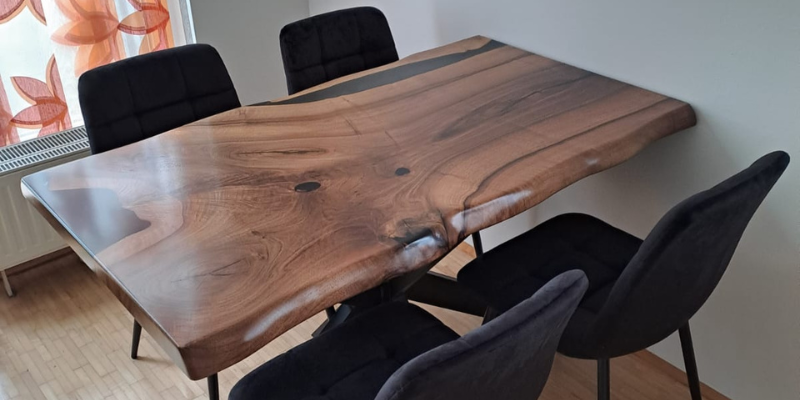 ID 5775: Esstisch Walnuss mit glasklarem Epoxidharz