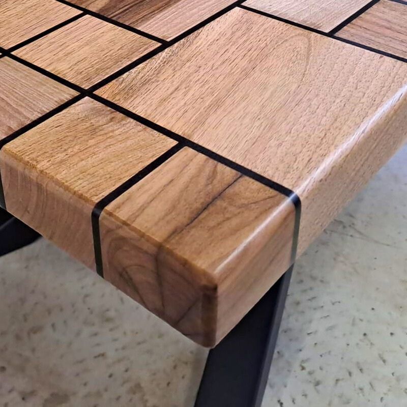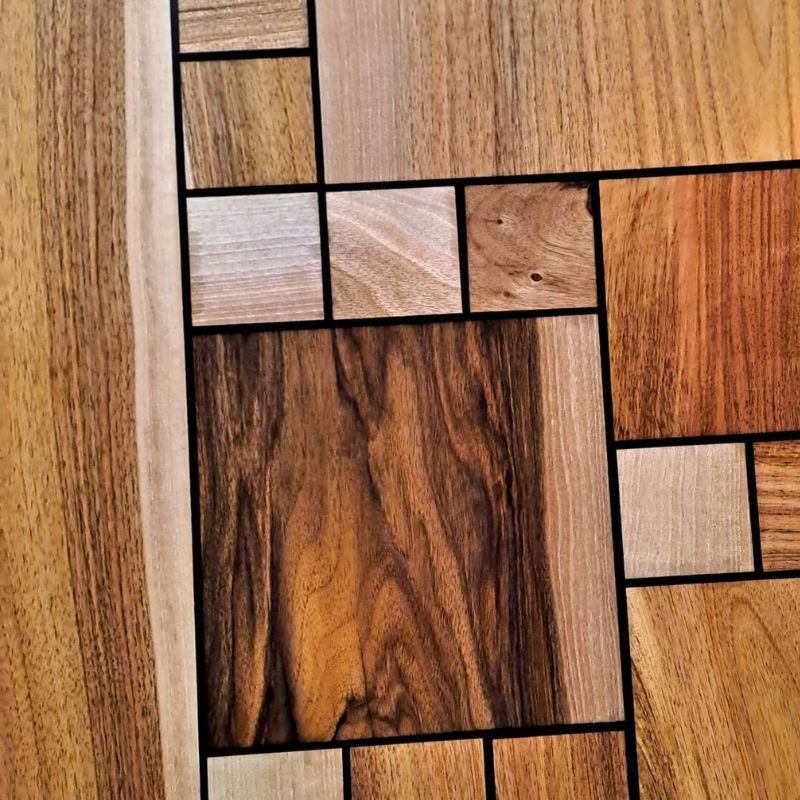 Dieser außergewöhnliche Esstisch setzt auf ein modernes, kunstvolles Design. Die Tischplatte besteht aus vier unterschiedlich großen Walnuss‑Elementen, die mit absoluter Präzision gefertigt und mit einem gleichmäßigen Abstand von 4 mm arrangiert werden. Die entstehenden Fugen werden anschließend mit hochwertigem Epoxidharz ausgegossen - in einer Farbe deiner Wahl. So entsteht ein einzigartiges Mosaik, das den Tisch zu einem echten Blickfang macht.