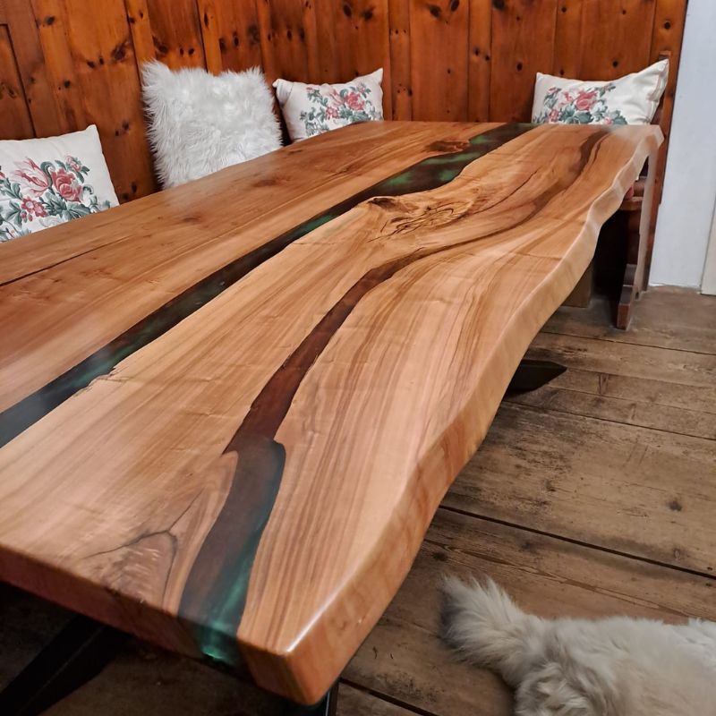 ID: 1005 Esstisch gedämpfte Weide mit Epoxidharz Anfertigung